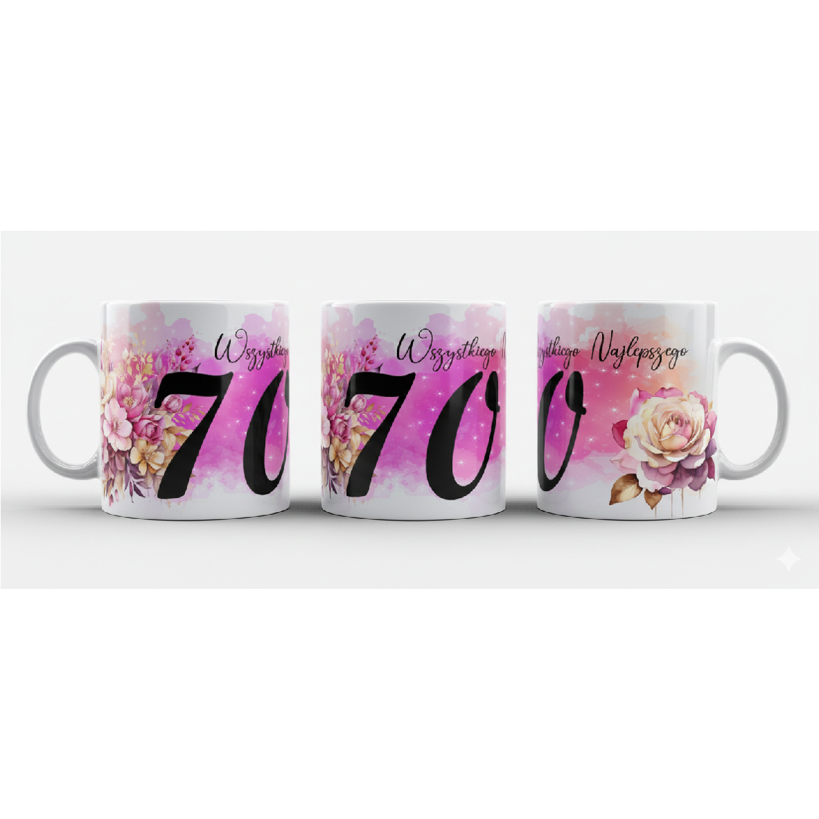 HomeSklepKubki i naczyniaKubkikubek personalizowany 330 ml – Urodziny 70 lat kwiaty róże